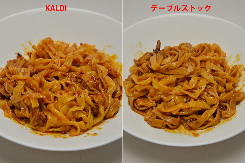 ▲麺をほぐしたあとの様子(左はKALDI、右はテーブルストック)