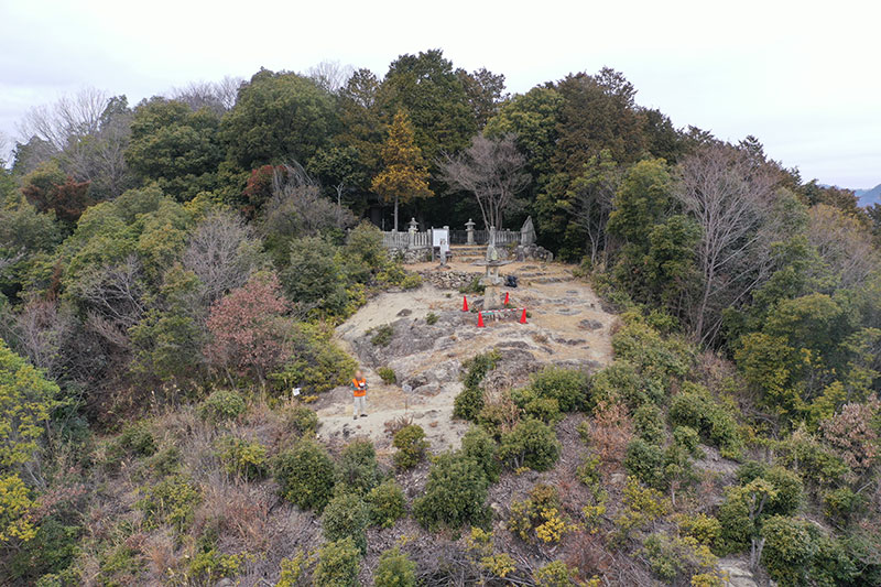 ▲愛宕神社は南東を見下ろせる立地になっている(ドローンで撮影)
