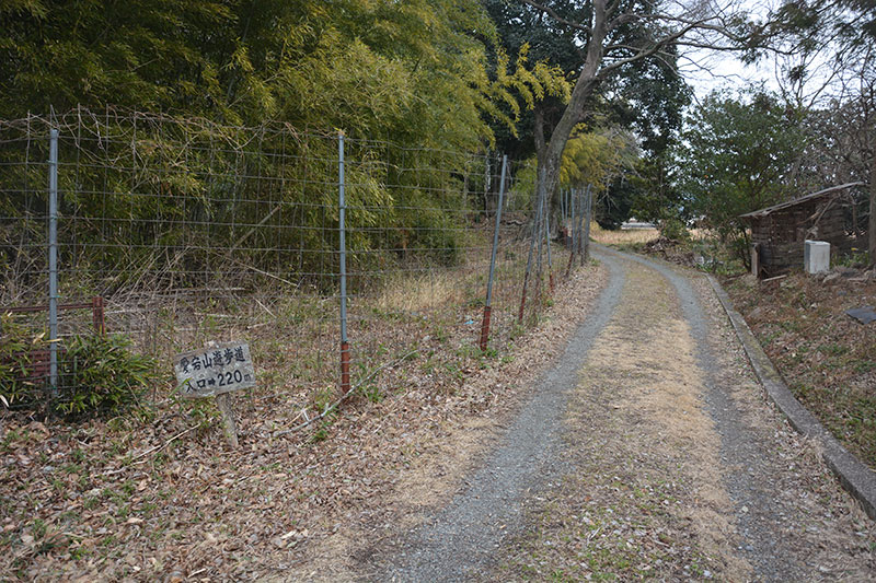 ▲「愛宕山遊歩道入口220m」の道標の前を進む