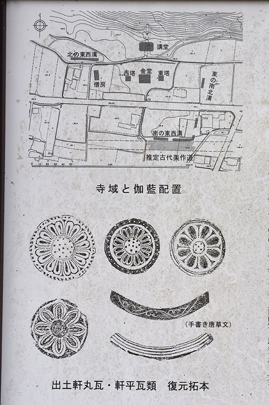 寺域は一辺が約一五〇メートルの方形と推定され、寺の前面には古代美作道が通っています。
