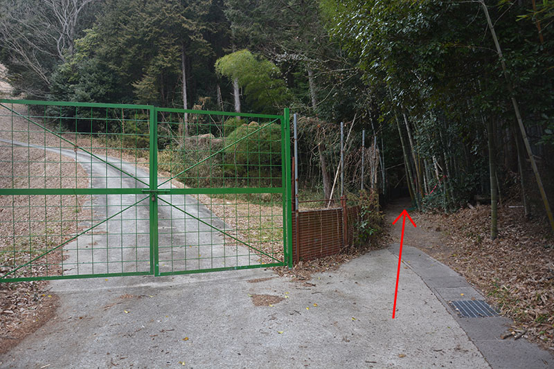 民家のすぐ手前に登山口があります(地図中「登山口」)。