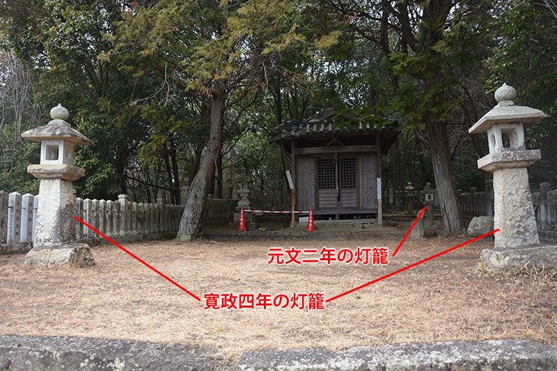 境内には、江戸時代の元文二年(一七三七)・寛政四年(一七九二)に奉納された灯籠を始めとして数基の灯籠が現存している。